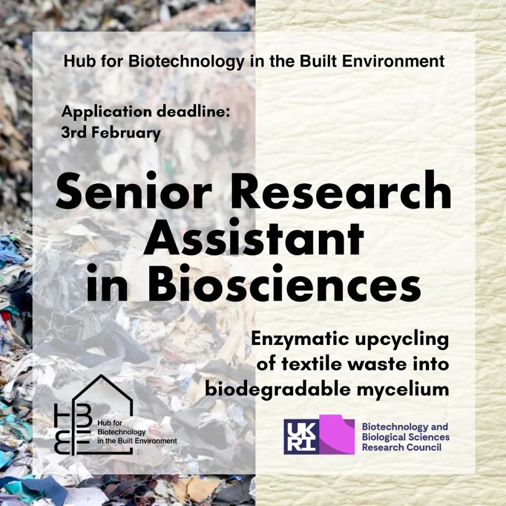 Great opportunity to join the team at HBBE and work on enzymatic upcycling of textile waste into biodegradable mycelium. For details: Senior Research Assistant